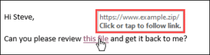 “Ok, Steve, what is the point of this article? Why should I care about .zip or .mov?” Well, say you receive an email from your colleague, possibly someone impersonating your colleague using Direct Send, and in the body of the email, they say to go to a hyperlink that ends with “.zip.”