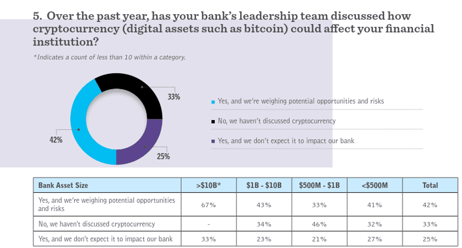 There are limited financial institutions in the space, which means there is an opportunity to capitalize on this growing trend. As shown by the survey results from Bank Director below, there is still time to be a first mover in this space.